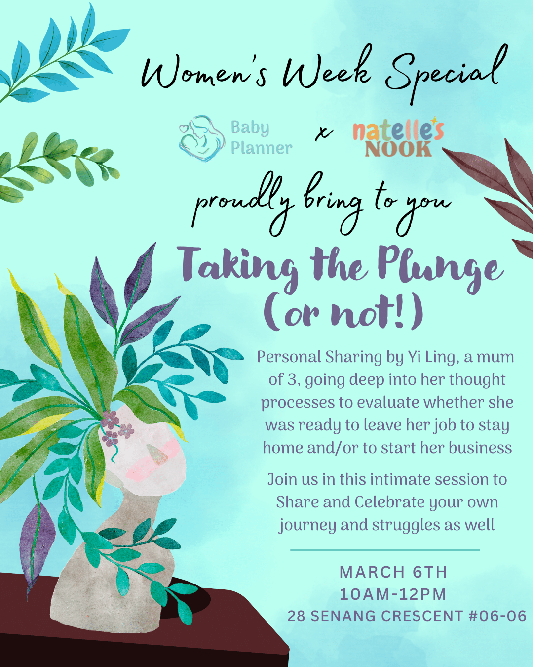 - She will go deep into a sharing on exactly how to go through a logical and practical thought process to evaluate whether she was ready to leave her job, whether it was to become a full-time stay-home mum, and/or whether she was ready to start her business.